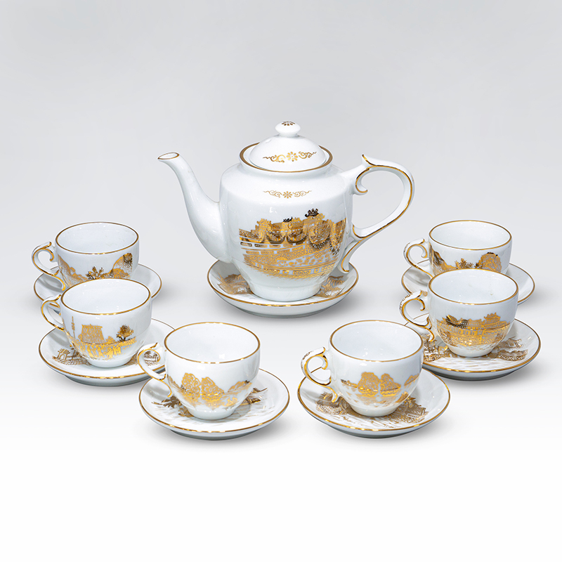 | Bộ sản phẩm | 01 Ấm trà, 06 Chén, 07 Đĩa lót (Tùy mẫu có thêm hũ trà, chuyên trà) |